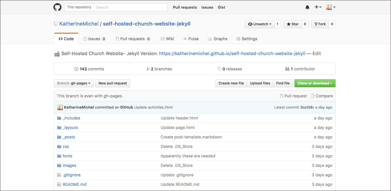 Though GitHub could looking intimidating at first, it can actually be simple to use. For instance, creating a new blog post is not any more difficult than creating a new Microsoft Word document, writing some text and saving it. For the website described in this GitBook, it is expected that the majority of the code-base will remain unchanged. The routine updates that need to be made can be made by non-developers in an isolated area of the code through a documented process, for example, occasionally adding a new blog post using the process described below.